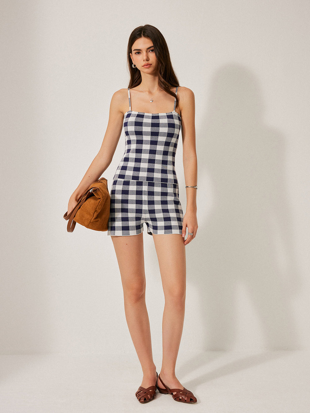 Charming tank top and shorts set in classic blue and white checks. Its flattering cut and thin straps give it a modern look, while the wide check pattern gives it a playful and timeless look. Ideal for casual days as well as summer outings, where you're looking for comfort and elegance.