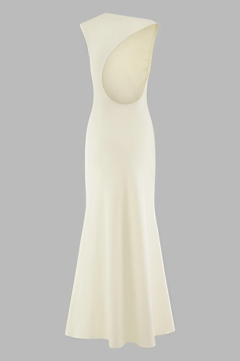 Clean silhouette in cream with a high neck and a slim fit that flares slightly at the hem. Minimalist and elegant—ideal for evenings, weddings, and special occasions.
