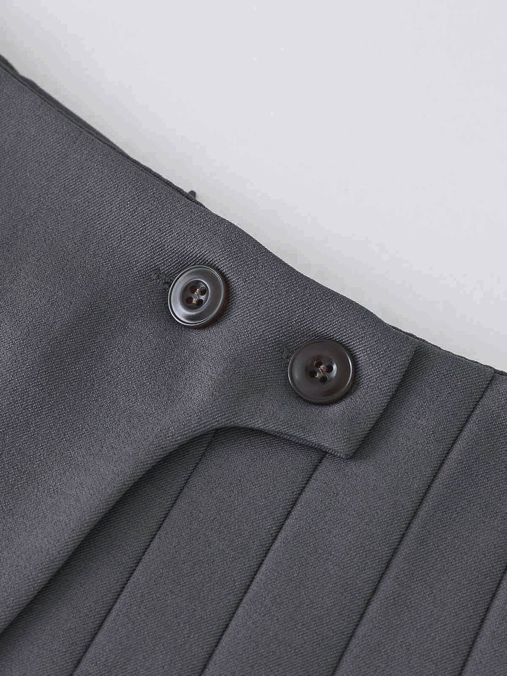 Elevate your look with this dark gray pleated mini skirt. The elegant buttons on the front and tight pleats create a refined look, ideal for everyday wear or elegant occasions.