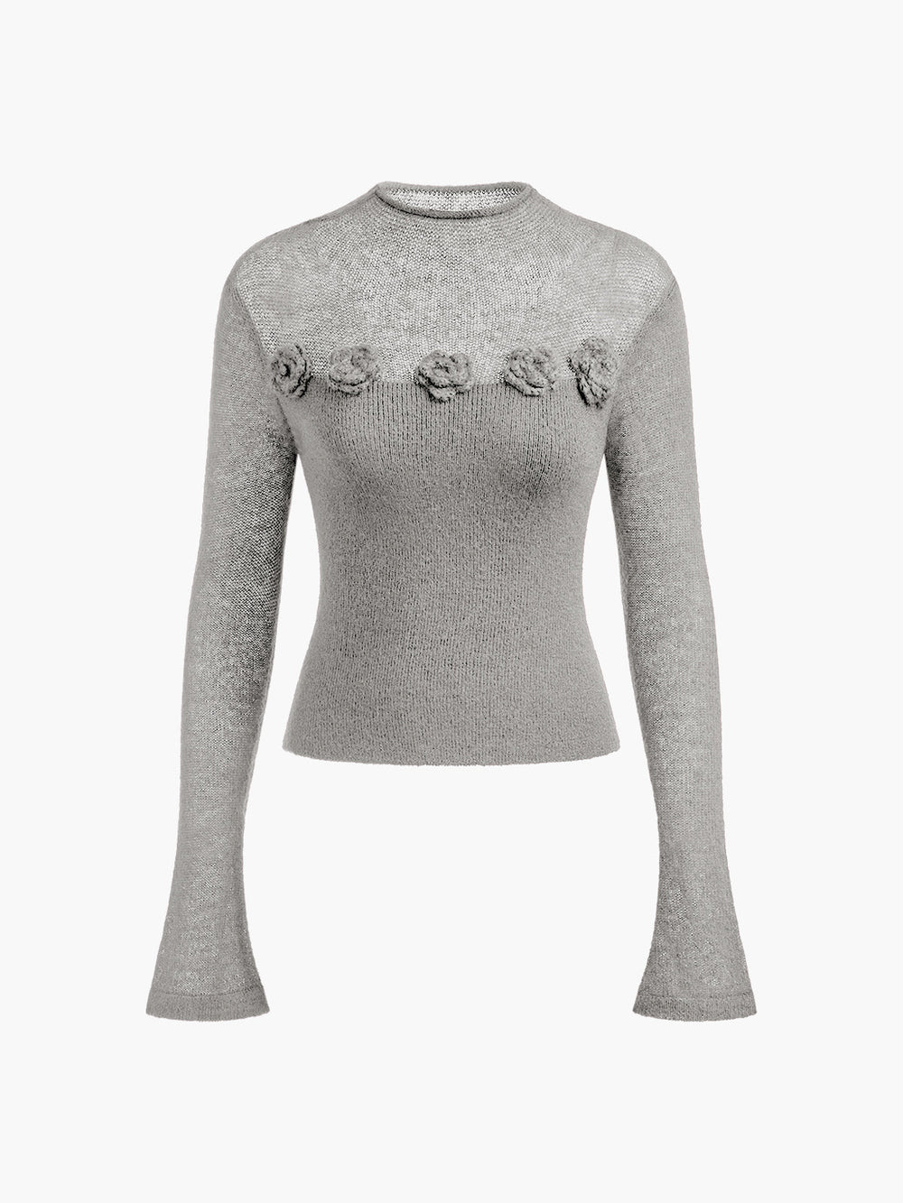 An elegant sheer mesh top with refined details on the chest and elegant flared sleeves. Its subtle transparency gives it a modern and refined look, ideal for both casual and dressy looks.