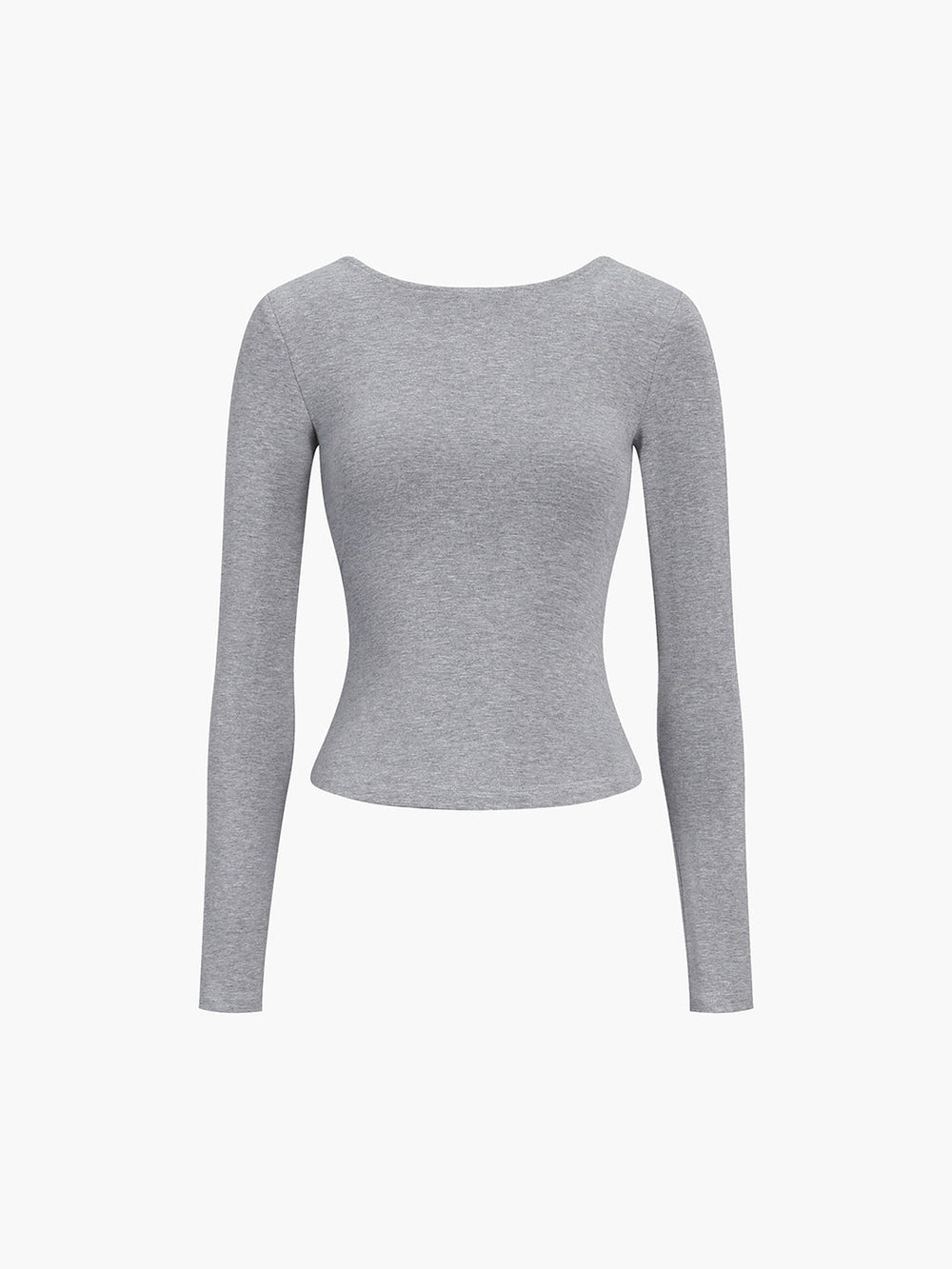 A classic and timeless top with long sleeves, a round neckline, and a fitted cut. Its simple design makes it versatile and easy to pair with a variety of outfits, both for everyday wear and for formal occasions.