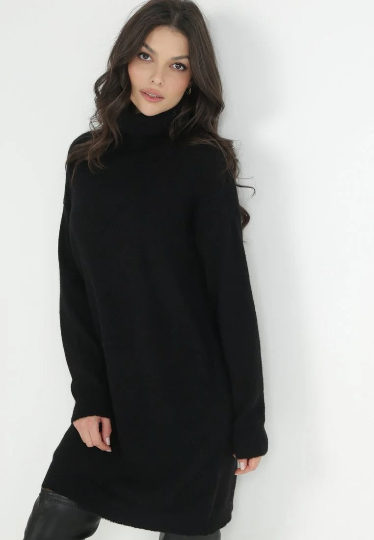 This sweater dress has a mock neck, long sleeves, and a relaxed fit. Its soft knit fabric provides warmth and comfort in cool weather. Easily wear it with boots or tights for a cozy look.