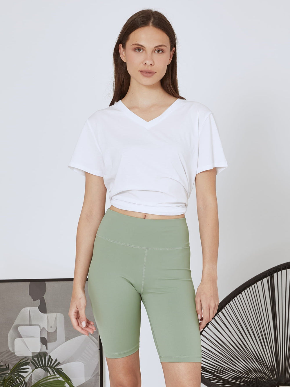 Flexible, high-waisted cycling shorts with a slim fit provide support and freedom of movement for all types of workouts. Their stretchy fabric hugs the body and is perfect for the gym, yoga, or as a sporty base for your everyday look.