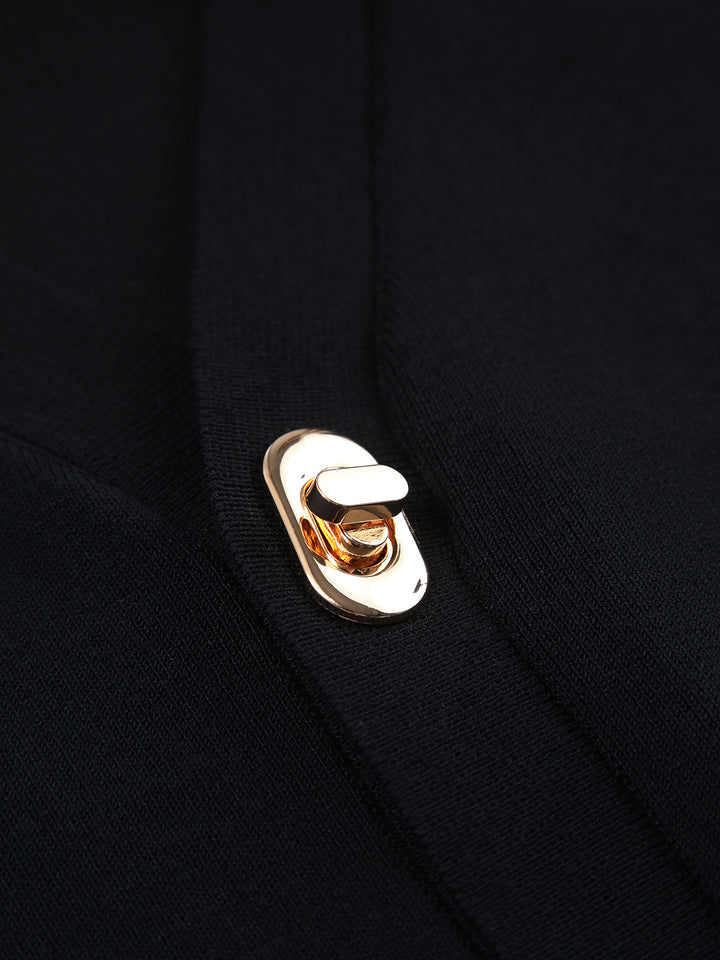 An elegant knit top with a button-front closure and a sleek collar. Perfect for everyday wear or evening wear.
