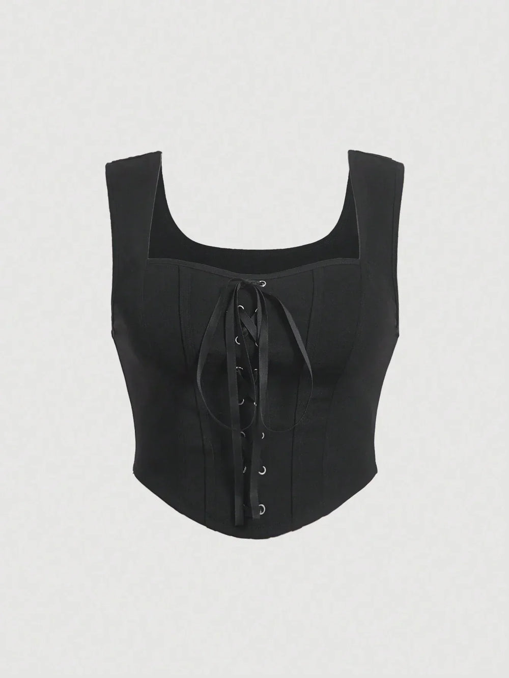 Add a touch of originality to your outfit with this fitted lace-up top. This top features a square neckline, wide straps, and a beautiful fitted cut. The drawstring at the front allows you to adjust the fit to your liking. Perfect with cropped pants, a skirt, or as a layer.