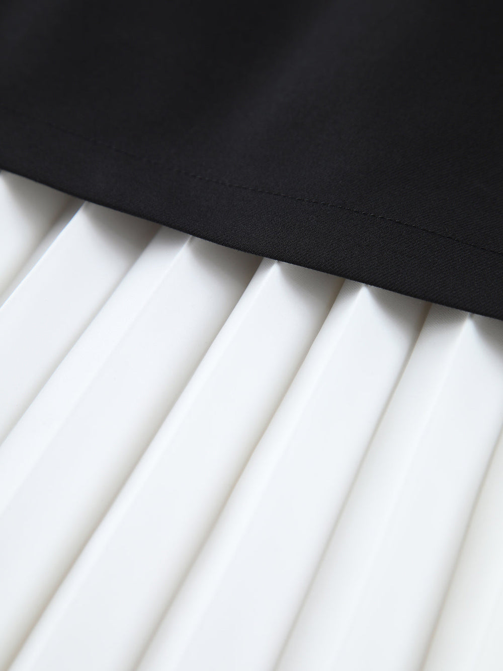 A sophisticated midi skirt with a unique ruffle design and pleated underskirt. The asymmetrical hem and flowing cut create a modern and elegant look, perfect for any occasion.