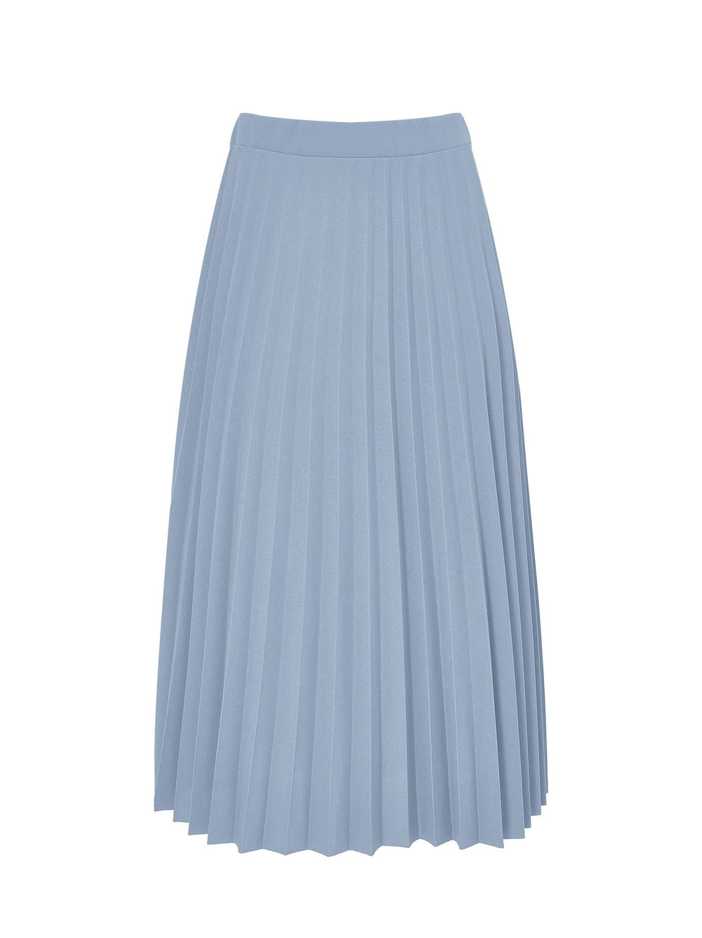 Add a touch of elegance to your wardrobe with this light blue pleated midi skirt. Its soft pastel hue and flowing pleats create a refined silhouette, ideal for everyday wear as well as special occasions.