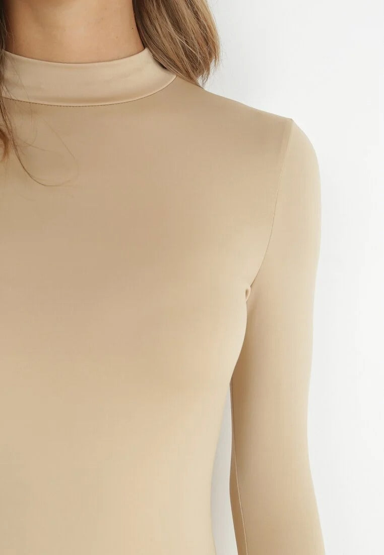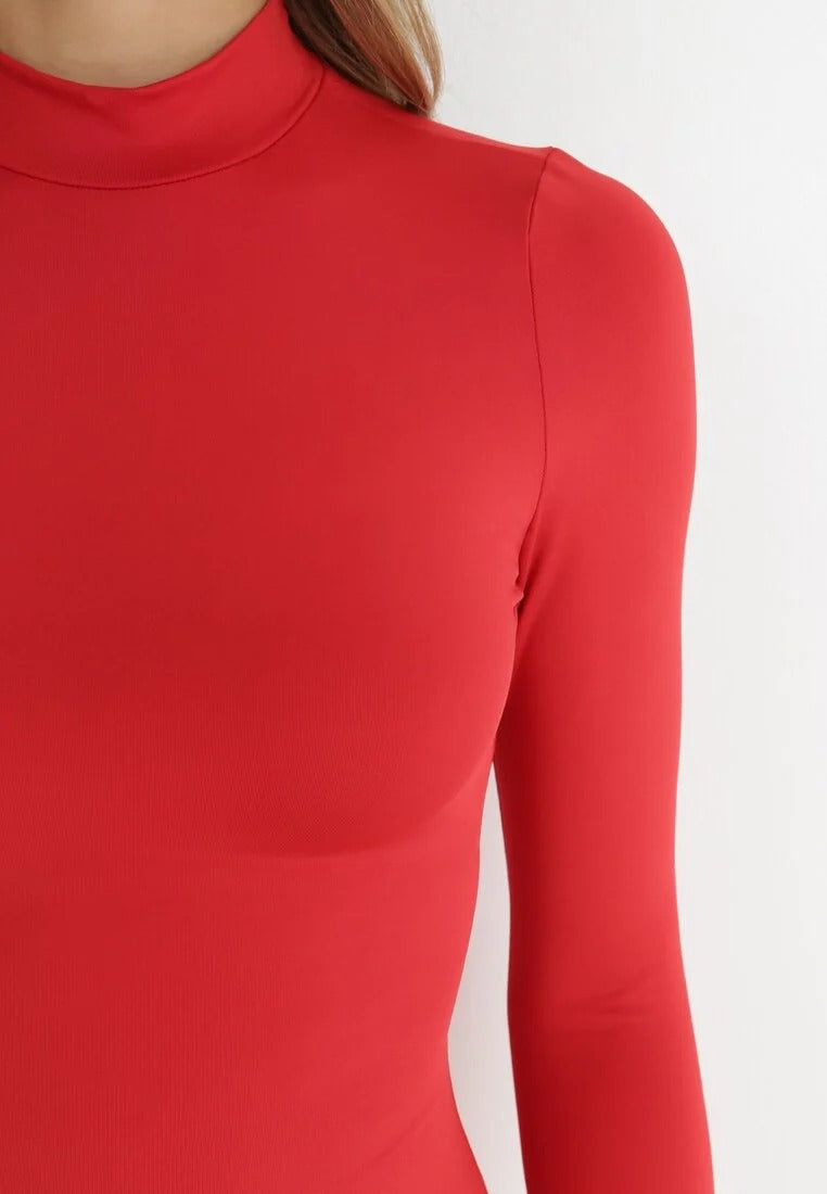 This mini dress has long sleeves, a mock neck, and a fitted cut. Its simple design is perfect for any occasion. Its soft, stretchy fabric is comfortable.
