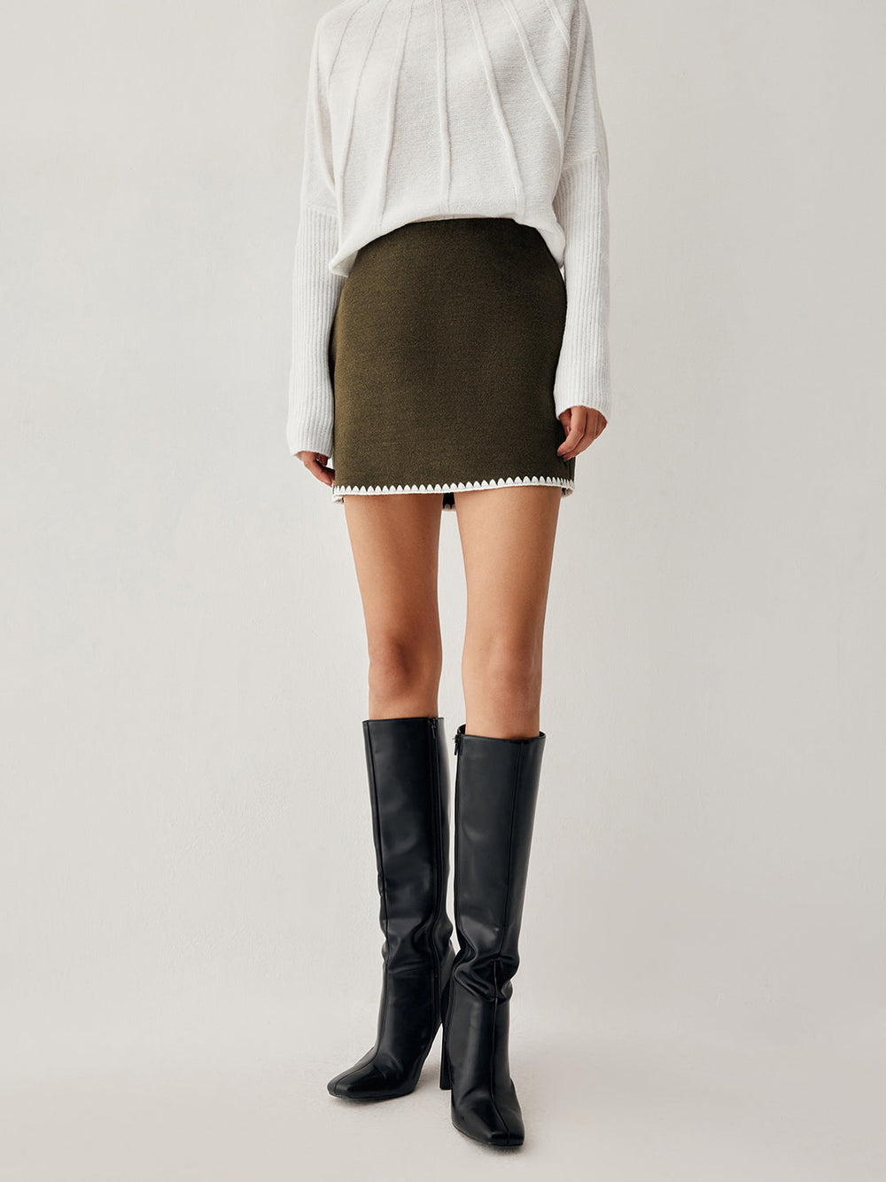Add a touch of originality to your look with this mini skirt with decorative hem. Its simple and modern design makes it ideal for both casual and formal occasions, effortlessly elevating any outfit.