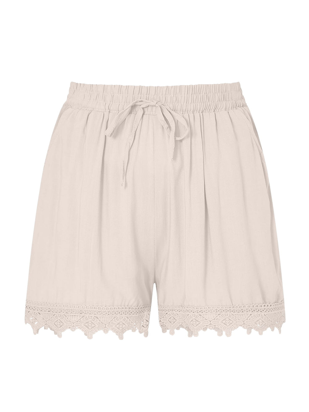 These cool and comfortable shorts feature an elastic waistband and an adjustable drawstring. Side pockets and an elegant lace trim along the hem give these shorts a romantic and feminine touch. Ideal for warm days and leisure time, for a casual and elegant look.