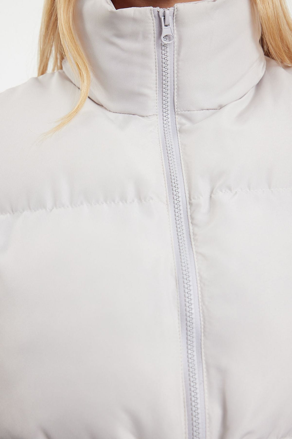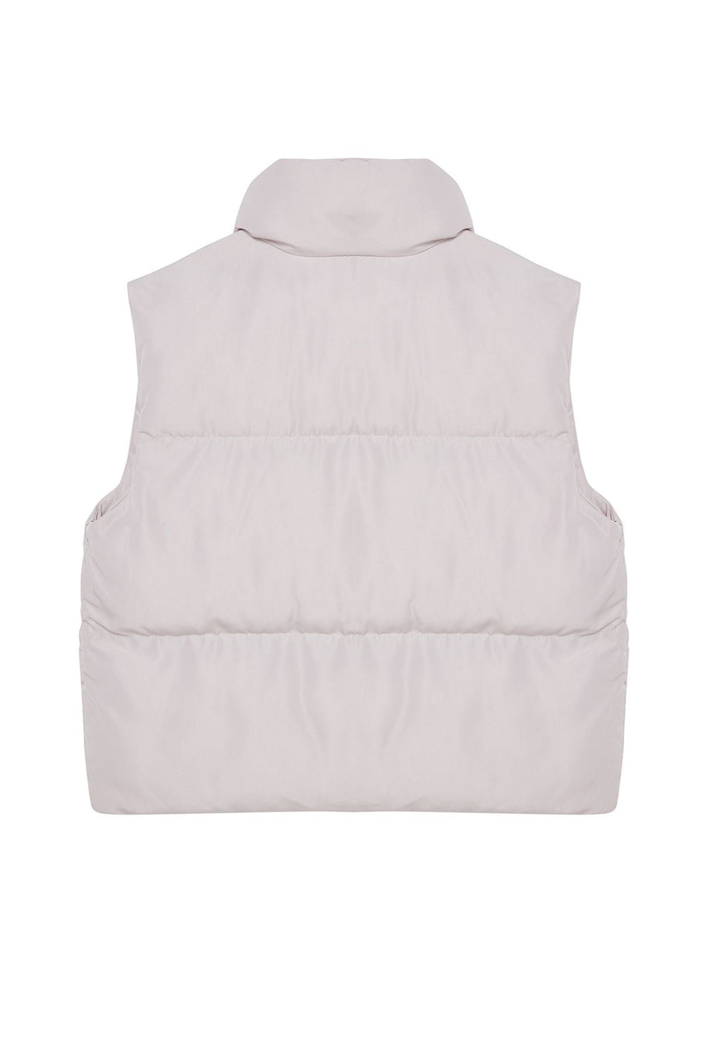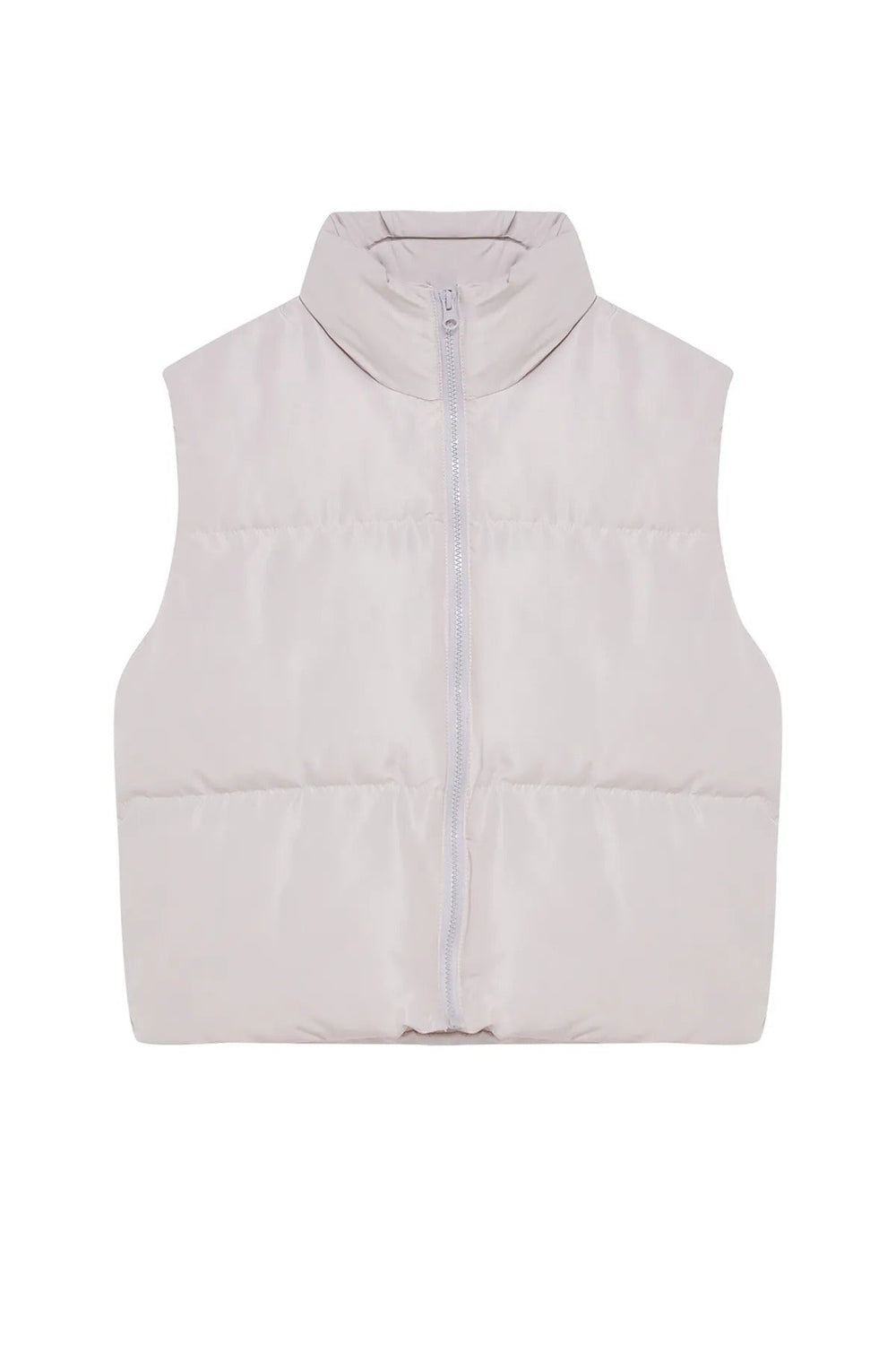 Stay comfortable and stylish with this sleeveless, lined cotton cardigan. With its high neck and sleek design, it's ideal for layering on cooler days, adding a modern and elegant touch to your outfit.