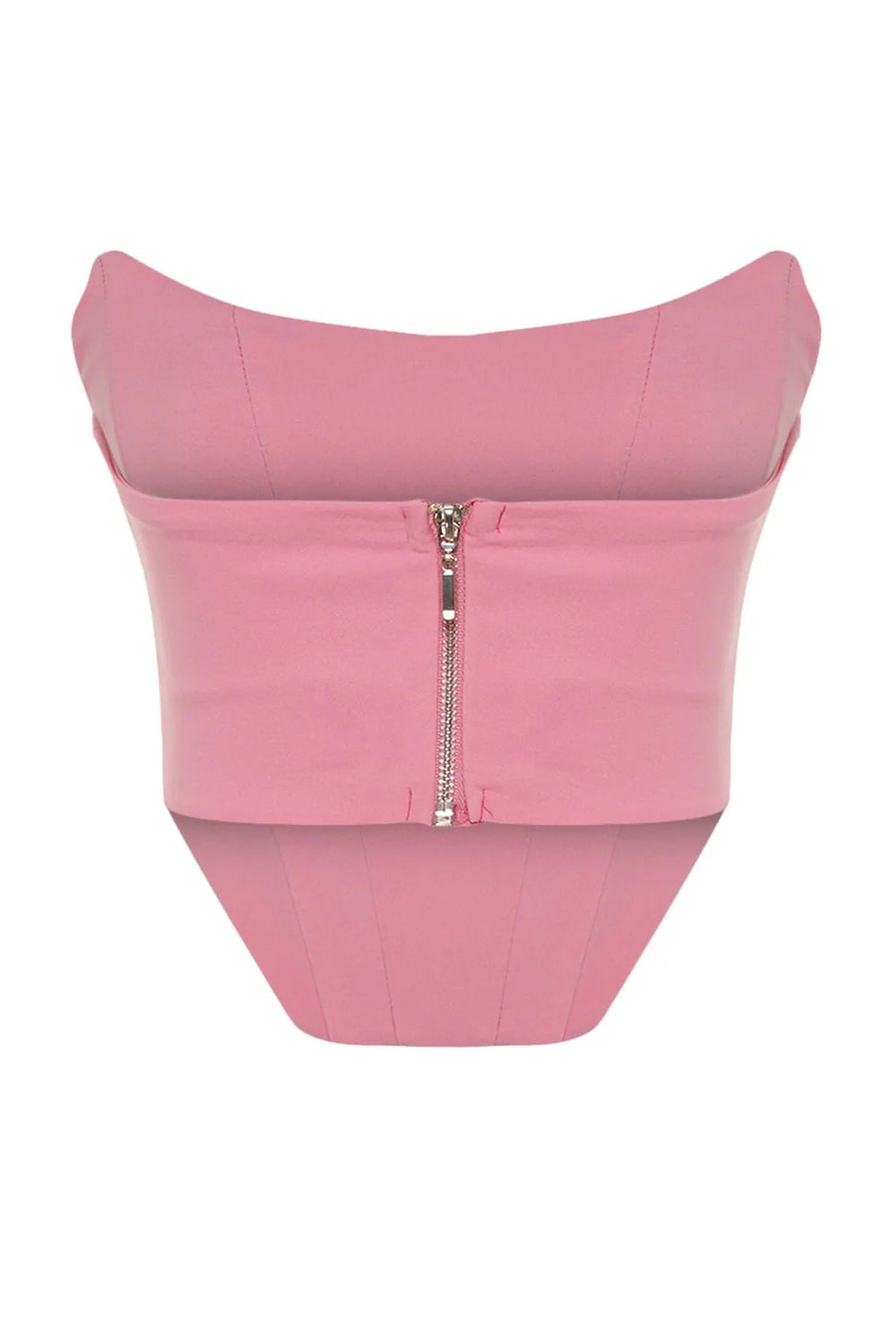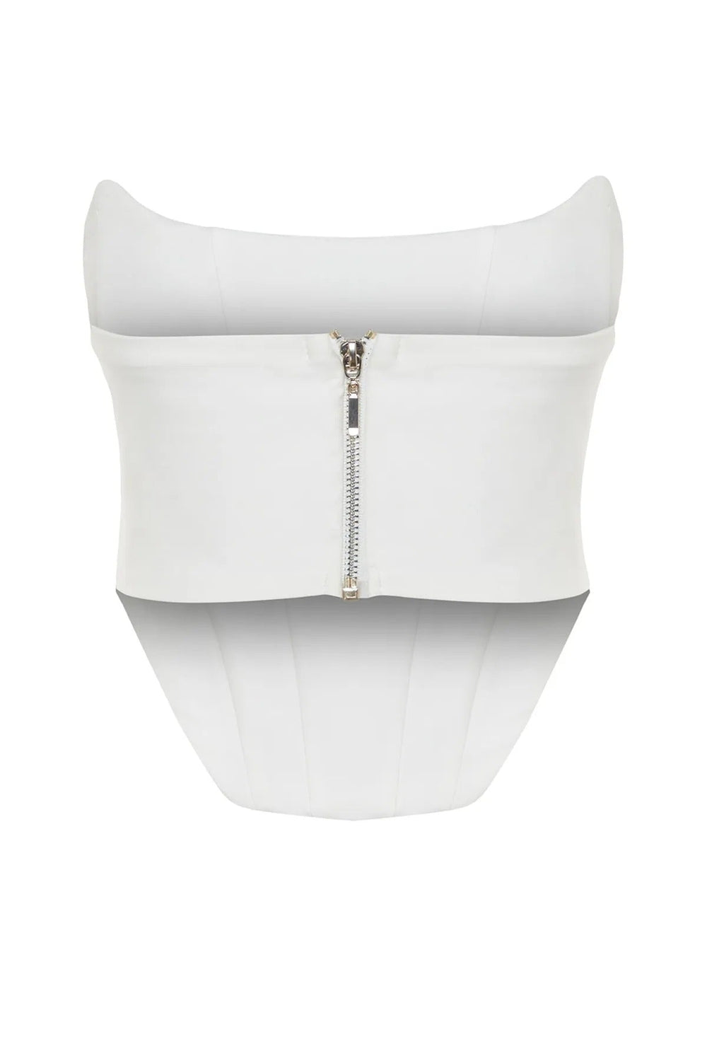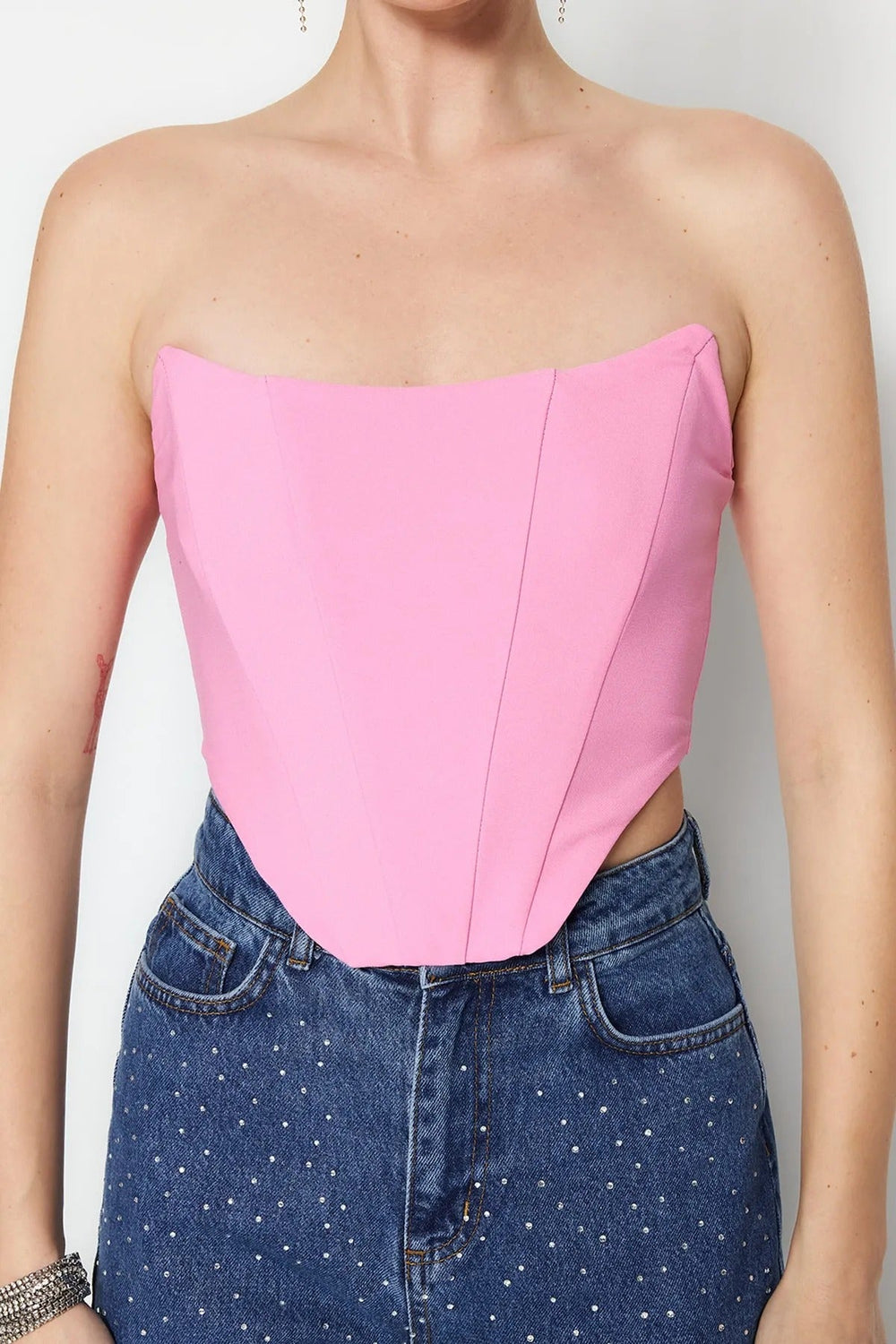 Stand out in this strapless, fitted bustier top. Its exposed seams and fitted cut give it a bold, modern look. Perfect with jeans, a skirt, or as a trendy layer for a night out or special occasion.