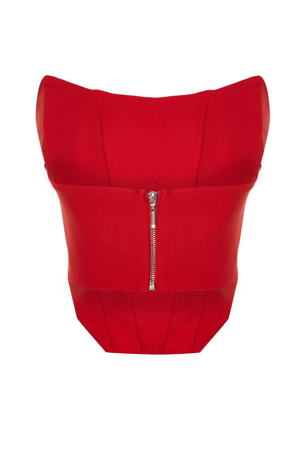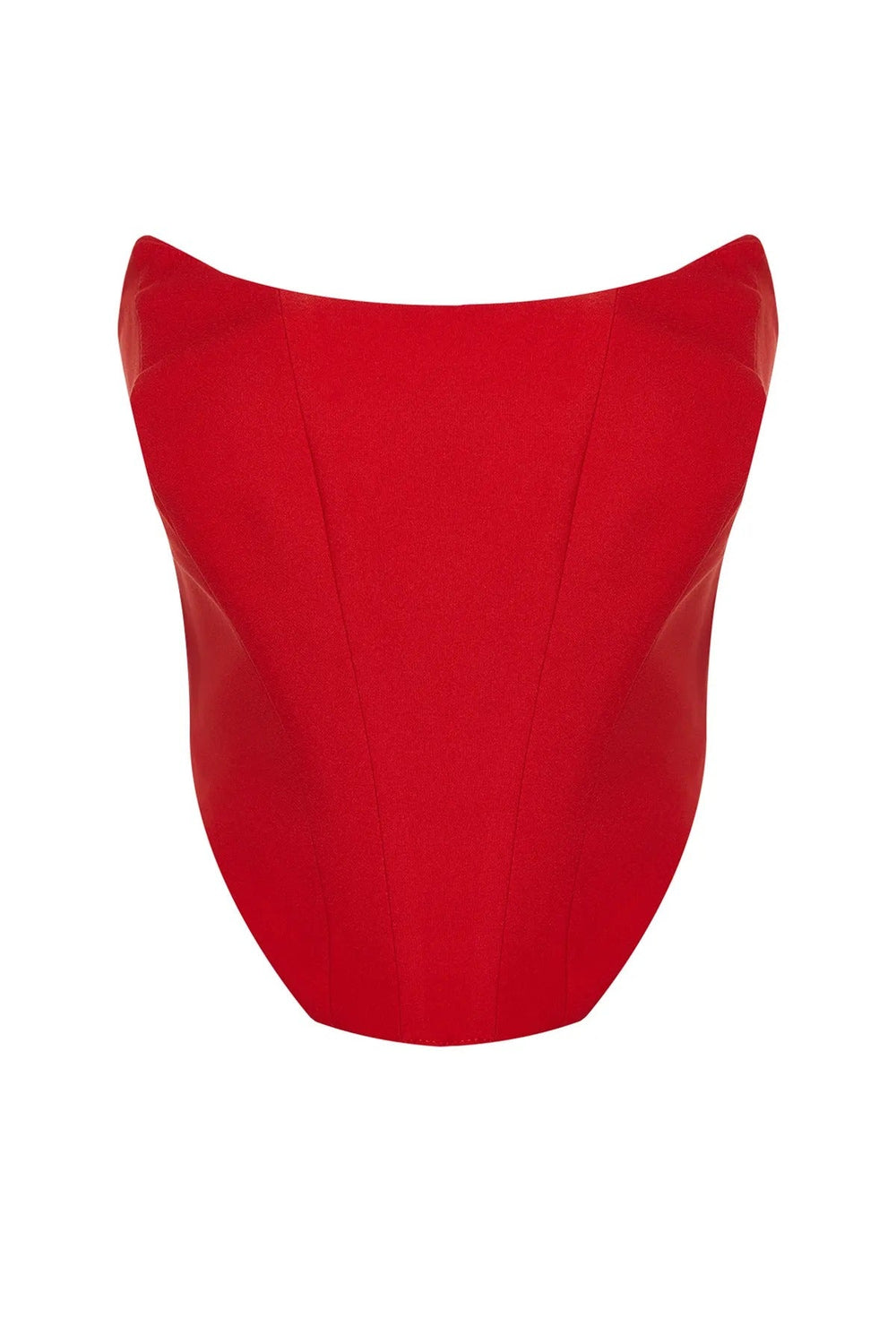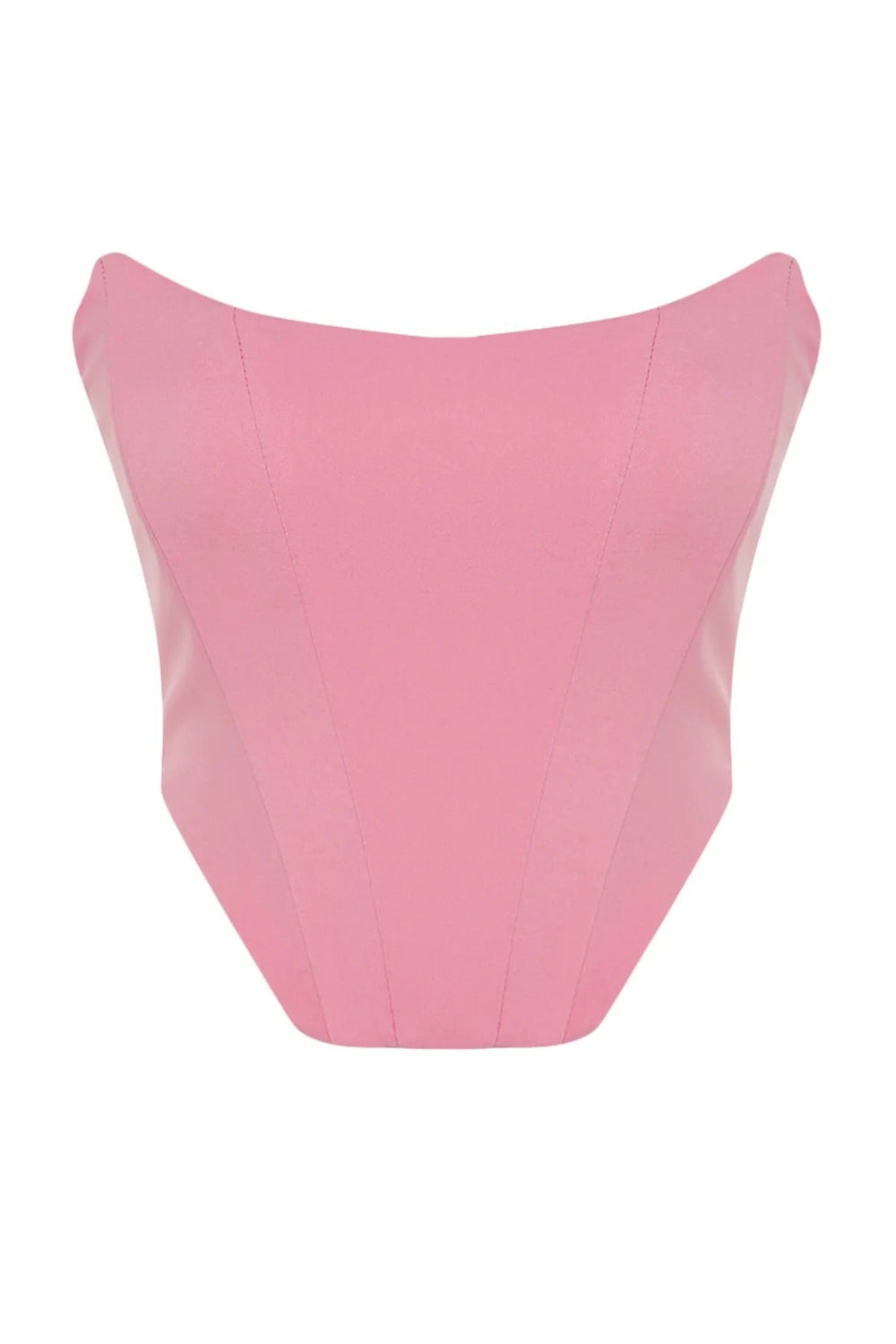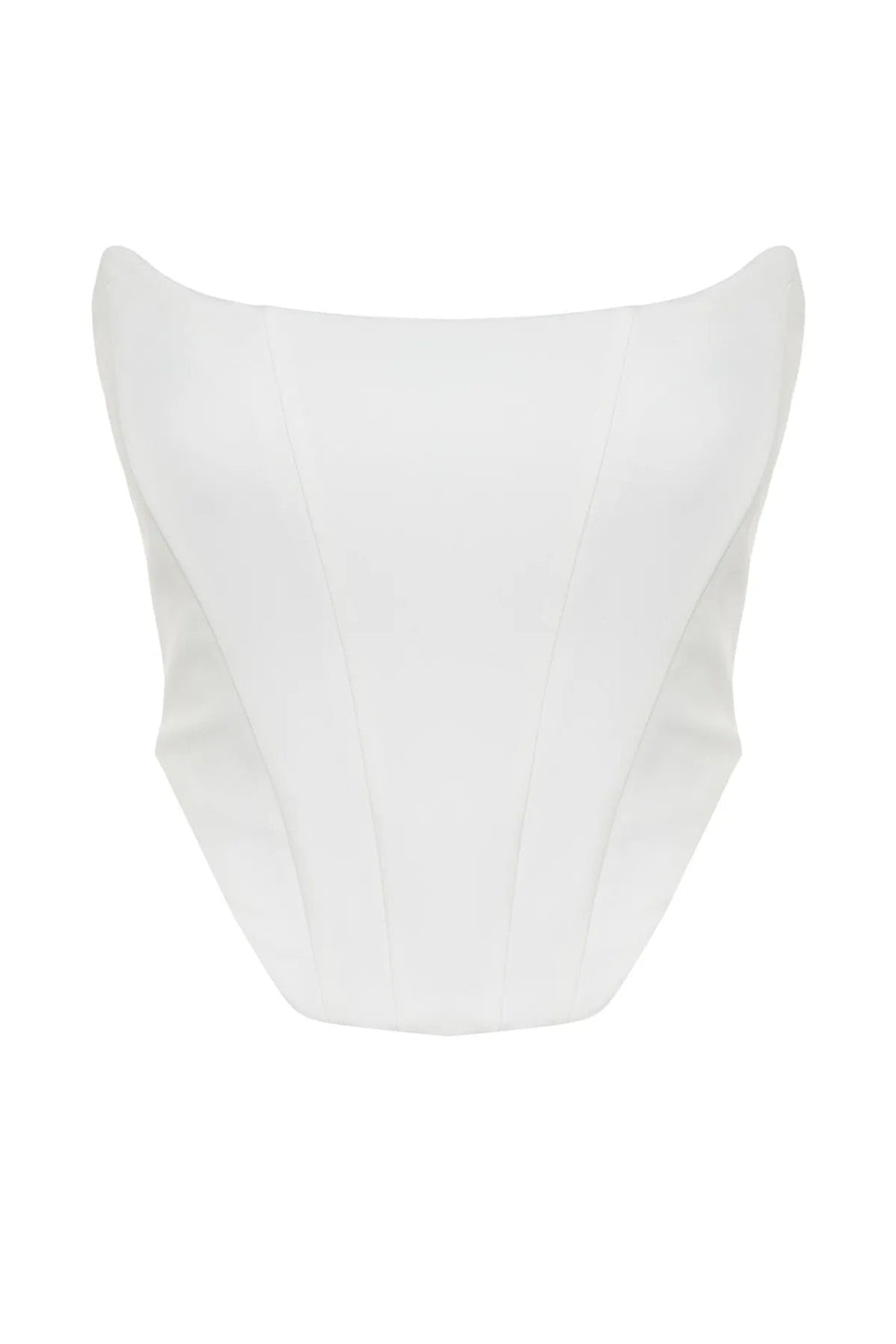 Stand out in this strapless, fitted bustier top. Its exposed seams and fitted cut give it a bold, modern look. Perfect with jeans, a skirt, or as a trendy layer for a night out or special occasion.