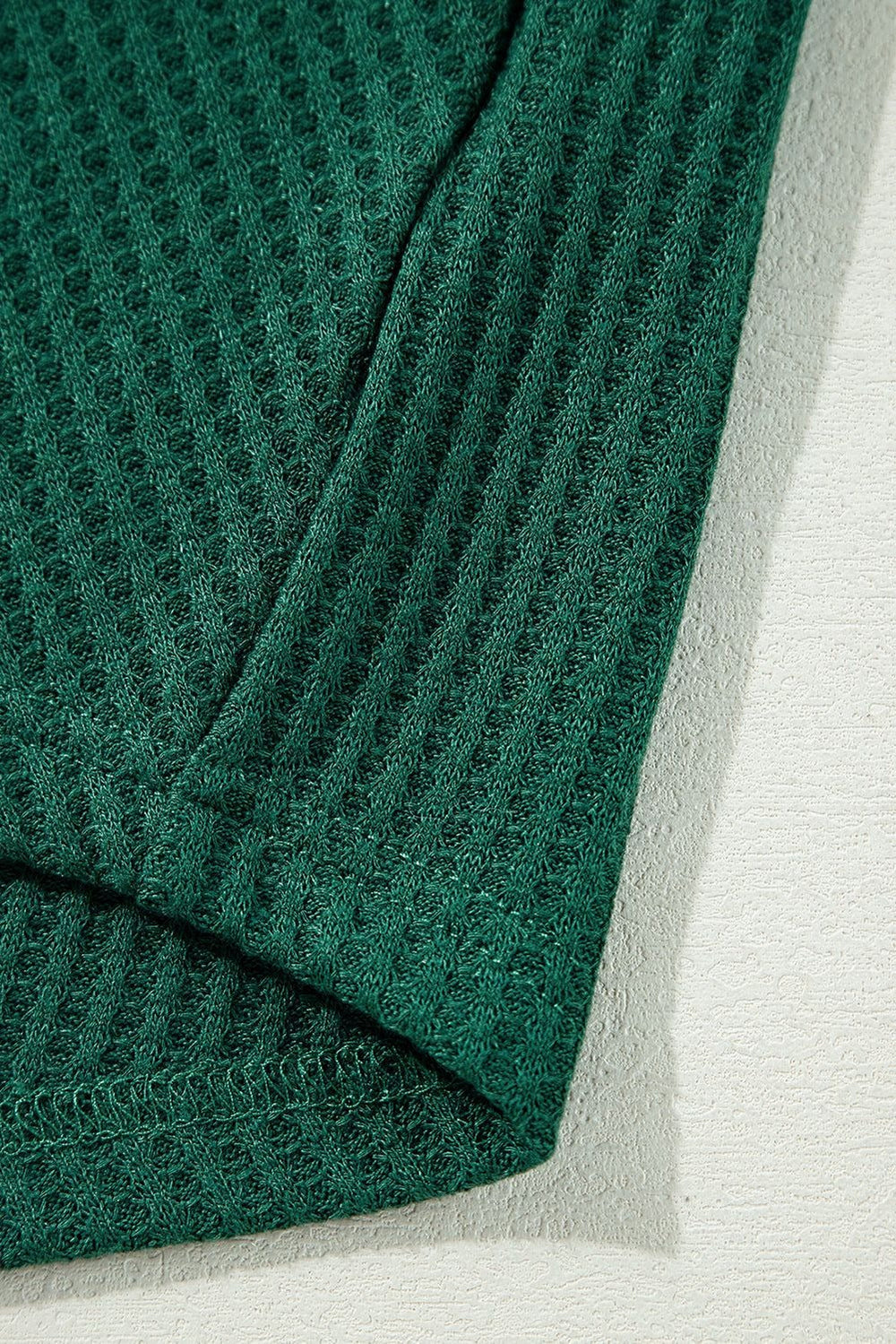 A simple everyday favorite with a waffle texture and a relaxed, oversized silhouette. The V-neck highlights the collarbones, dropped shoulders give a relaxed feel, and the tunic-length fit provides comfortable coverage over the hips. Long sleeves that can be rolled up and a straight hem that easily tucks into jeans or shorts—perfect for casual days and comfortable layering.