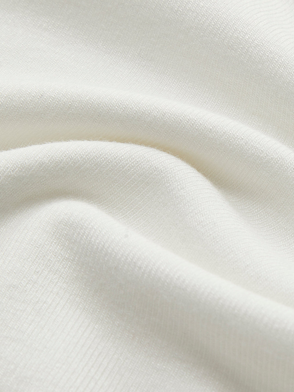 Create an elegant look with this fitted white long-sleeved top. The subtle, corset-inspired seams create a flattering, structured silhouette. The soft ribbed fabric and high neck give it a modern look, perfect for everyday wear or evening wear.