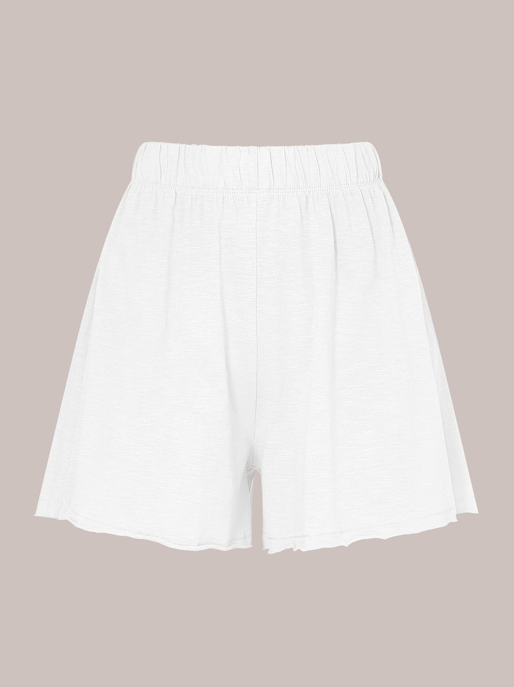 These lightweight, airy shorts feature a wide fit and an elastic waistband for optimal comfort. Their style is simple and elegant. Perfect for warm days or casual occasions where you want something cool and comfortable.